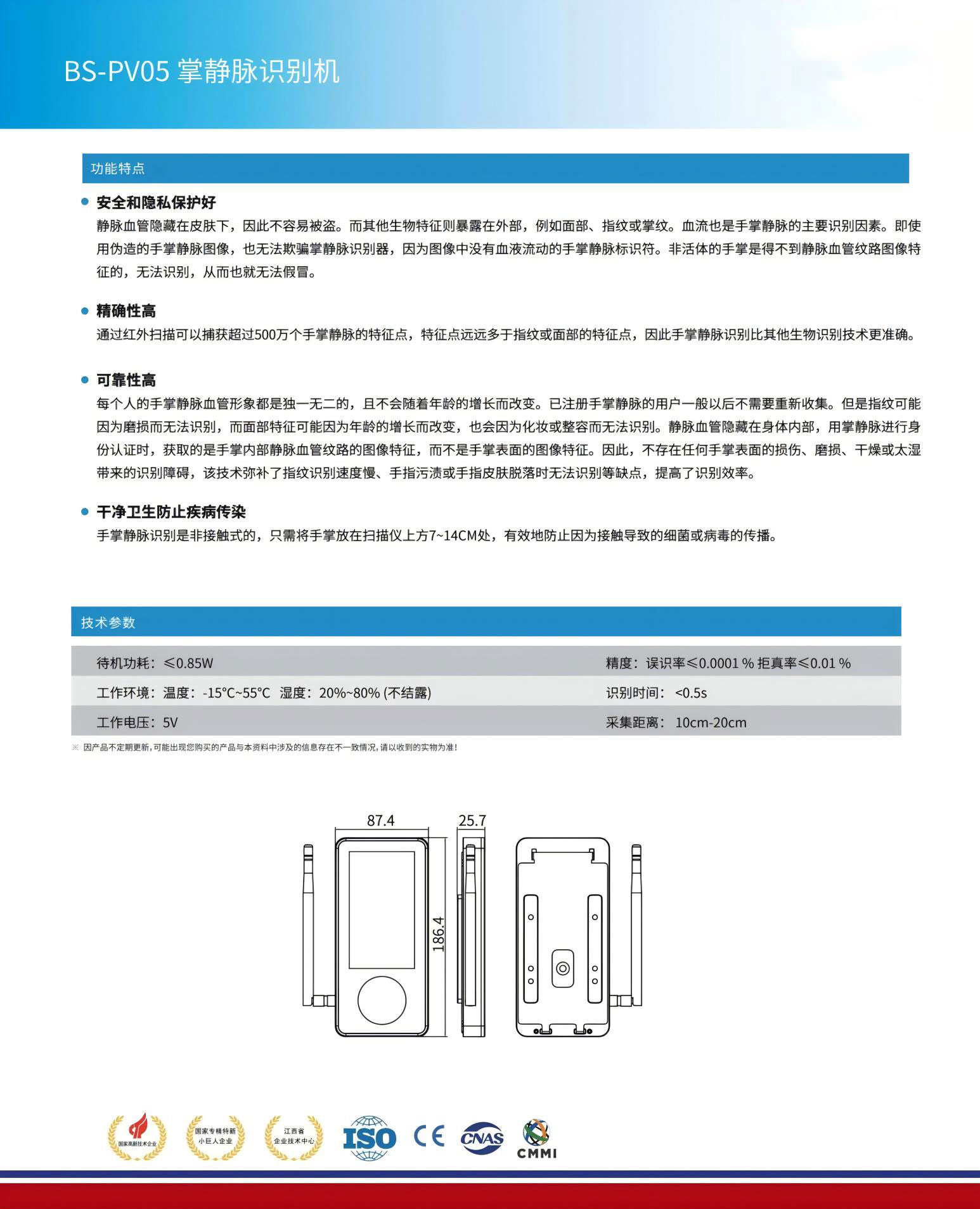 每個(gè)人的手掌靜脈血管形象都是獨(dú)一無(wú)二的,且不會(huì)隨著年齡的增長(zhǎng)而改變。已注冊(cè)手掌靜脈的用戶一般以后不需要重新收集。但是指紋可能因?yàn)槟p而無(wú)法識(shí)別,而面部特征可能因?yàn)槟挲g的增長(zhǎng)而改變,也會(huì)因?yàn)榛瘖y或整容而無(wú)法識(shí)別。靜脈血管隱藏在身體部,用掌靜脈進(jìn)行身份認(rèn)證時(shí),獲取的是手掌內(nèi)部靜脈血管紋路的圖像特征,而不是手掌表面的圖像特征。因此,不存在任何手掌表面的損傷、磨損、干燥或太濕帶來(lái)的識(shí)別障礙,該技術(shù)彌補(bǔ)了指紋識(shí)別速度慢、手指污漬或手指皮膚脫落時(shí)無(wú)法識(shí)別等缺點(diǎn),提高了識(shí)別效率。