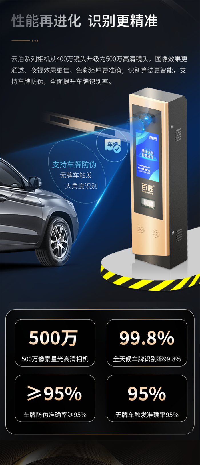 云泊系列相機從400萬鏡頭升級為500萬高清鏡頭,圖像效果更通透、夜視效果更佳、色彩還原更準確;識別算法更智能,支持車牌防偽,全面提升車牌識別率。
